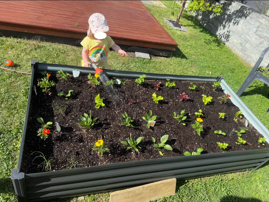 The flat is attached to our house but is fully self-contained, with its own private entrance and a lockable gate. It opens out onto a large, sunny deck which gets great light during the day with some fruit trees and a raised vege garden.