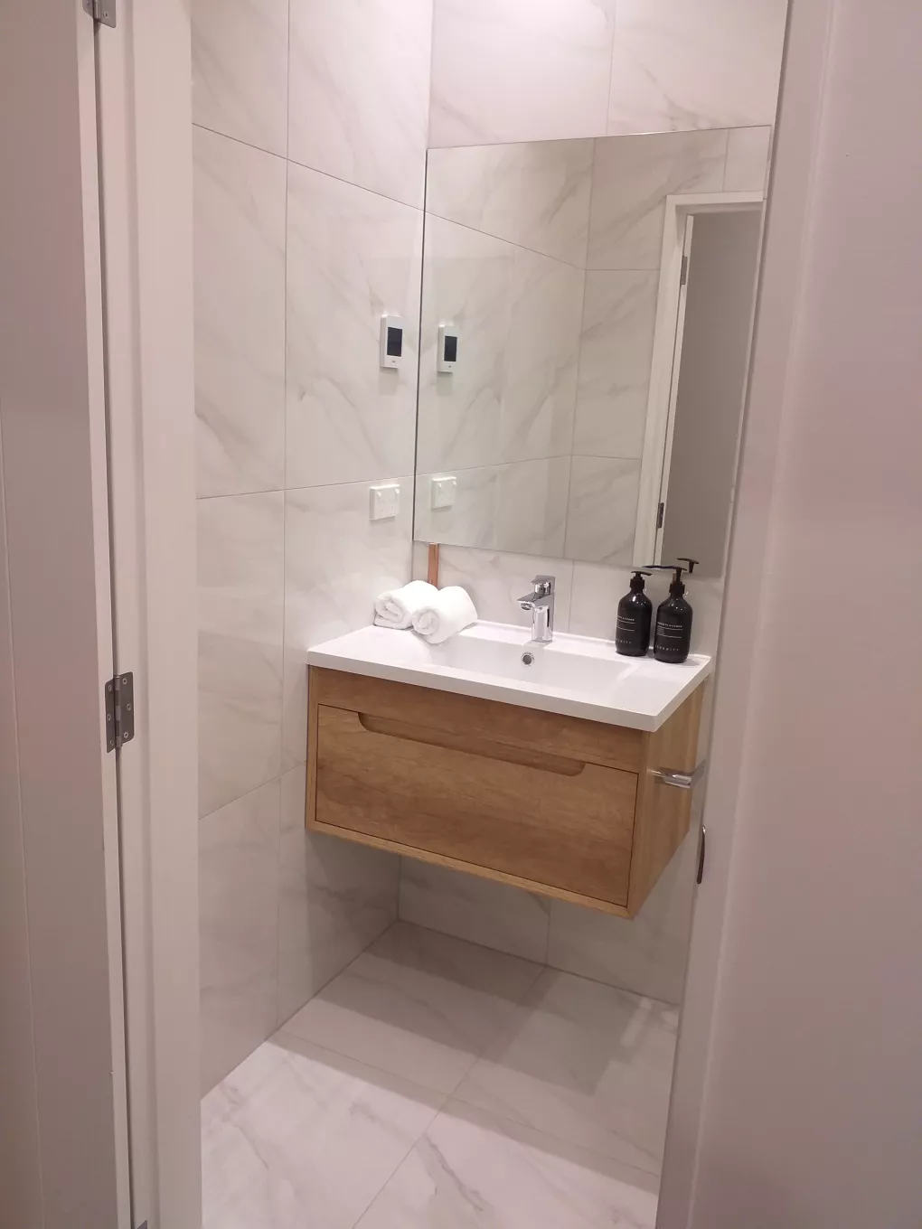 Bright open-plan living area and modern bathroom