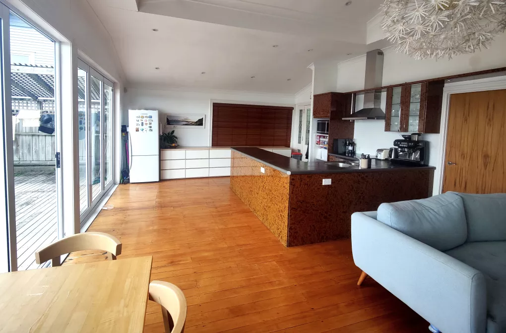 The house has a massive deck, nice high ceilings, dimmer lightning, 2 bathrooms, 3 rooms, wooden floors and ample parking. We have one neighbour with the rest being native birds and the ocean. You can bring your own furniture and some of this will be modernised by the time you move in.