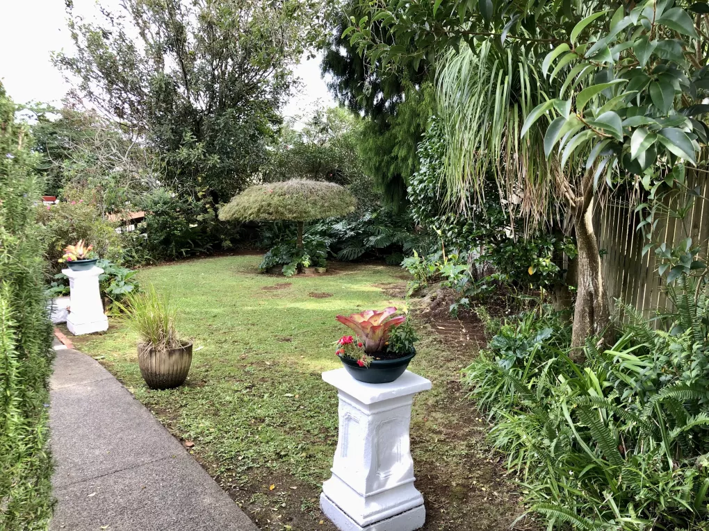 Lovely gardens with established fruit, nut and ornamental exotic trees.