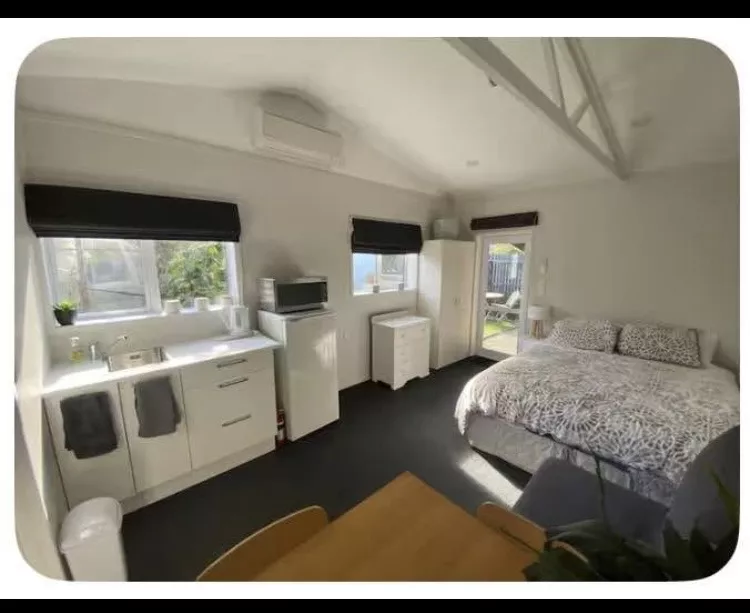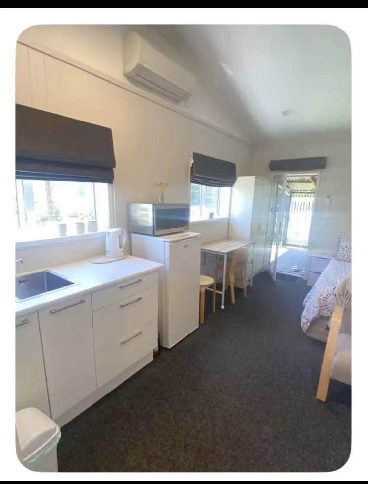 This private space has its own bathroom and kitchenette. Power, internet, hot water and off street under cover parking included. Furnished, Queen bed, basic kitchen equipment provided.